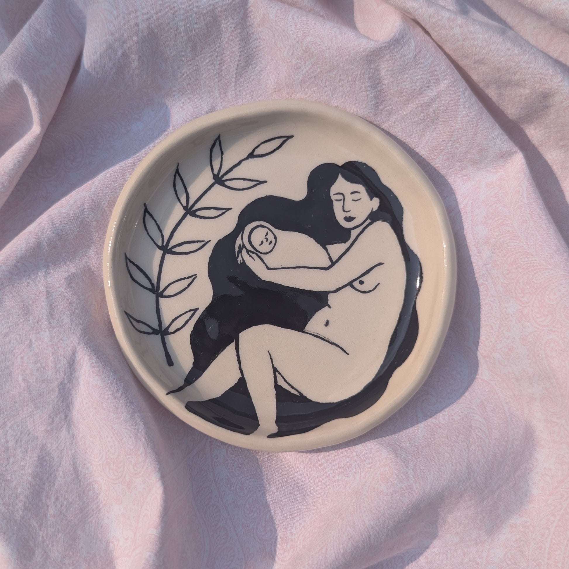Petite assiette pour bijoux, façonnée et peinte à la main, au Québec.