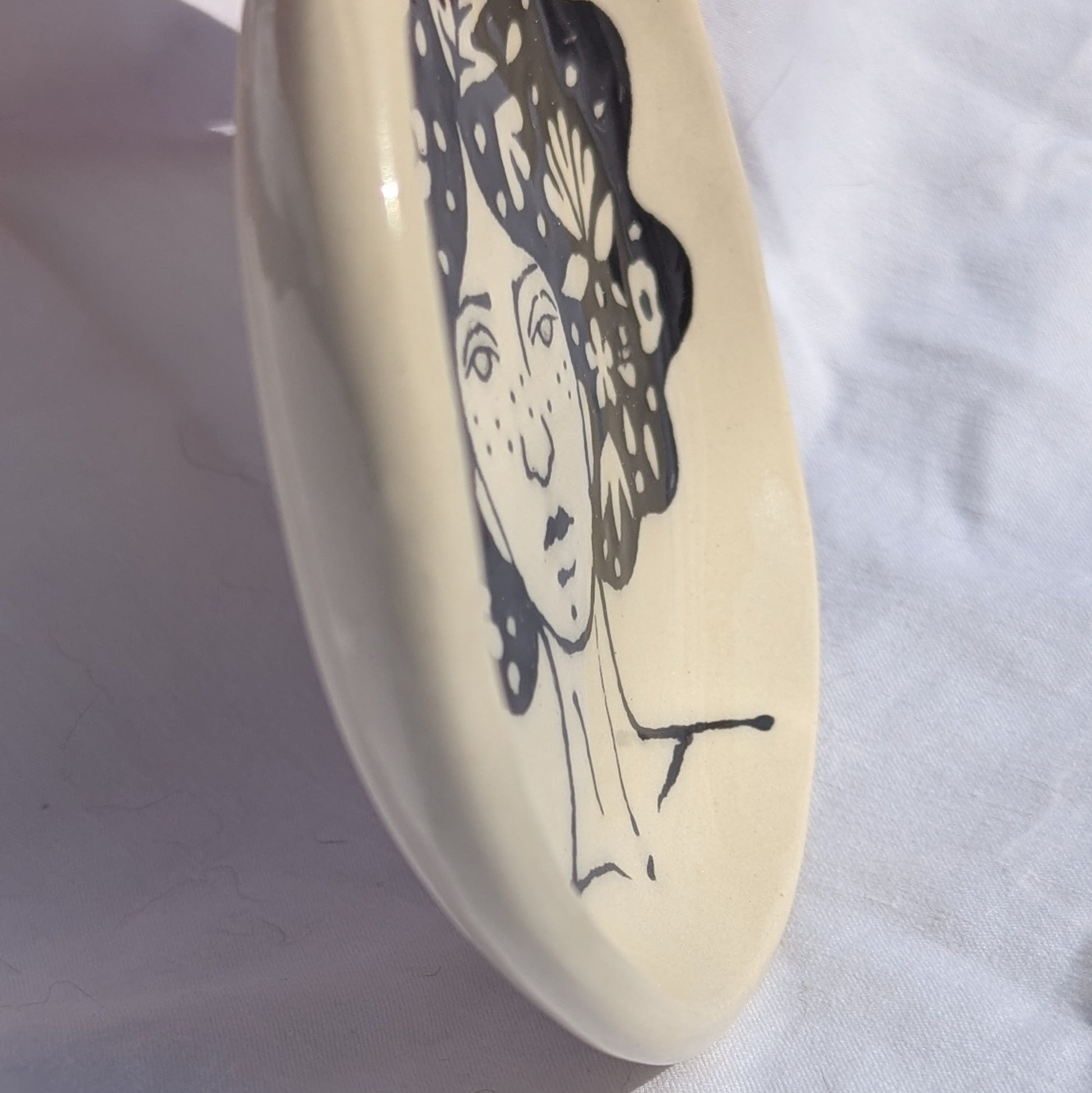 Petite assiette pour bijoux, façonnée et peinte à la main, au Québec.